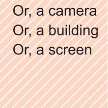 "Or, a building" was recorded in part at the Badischer Kunstverein, Karlsruhe. "Or, a screen" was recorded in part at the Deutsche Kinemathek, Museum fuer Film und Fernsehen, Berlin.
